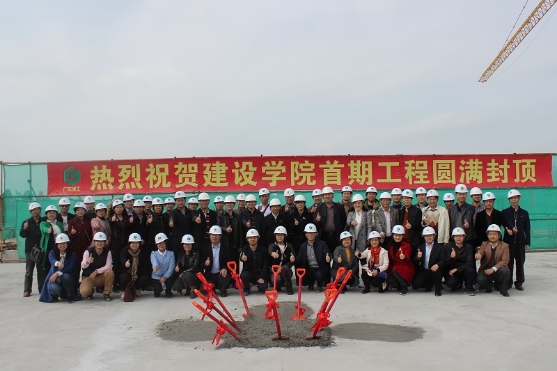 在封頂儀式上,葉飛松在致辭時興奮地說,幾代廣東建院建新校夢想已指日可待,他首先感謝籌建辦和所有建設者付出的辛勤勞動。他希望,在新校即將落成進駐的收官時刻,大家鼓足干勁加油干,抓好建設新校區(qū)的最后一公里,實現(xiàn)9月初首批5000名學生進駐的目標。